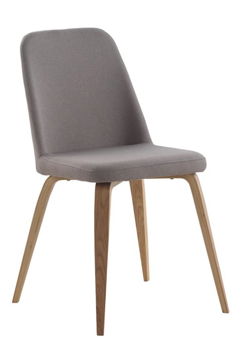 2 sillas tapizadas de color lino y patas de roble natural.