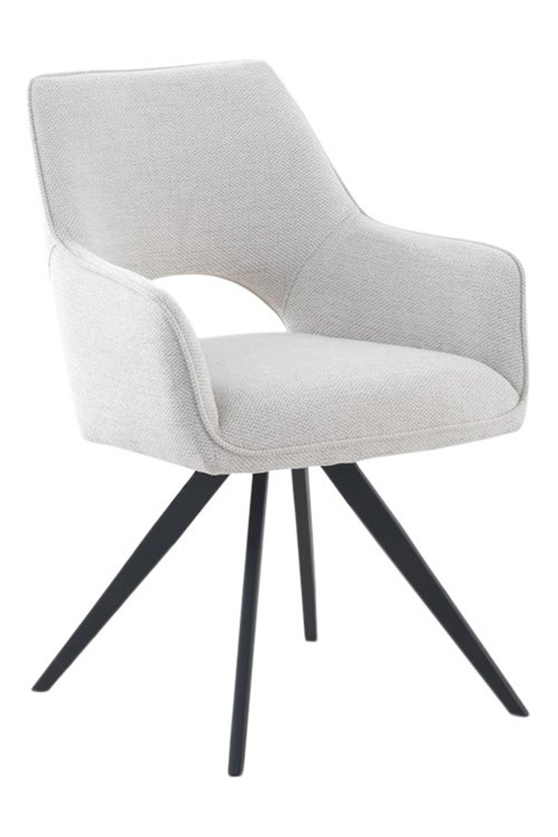 4 sillones giratorios tapizados de color beige con patas de metal negro.