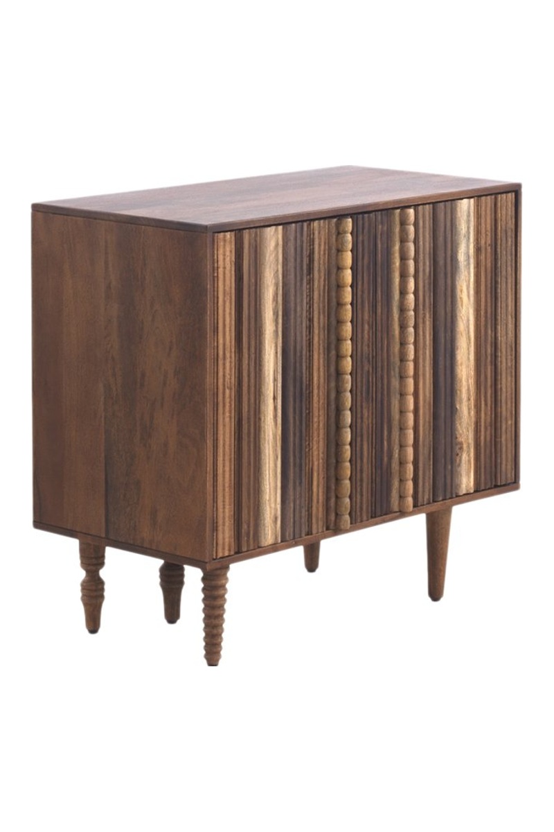 Aparador pequeño de acacia con puertas estratificadas de varios colores.
