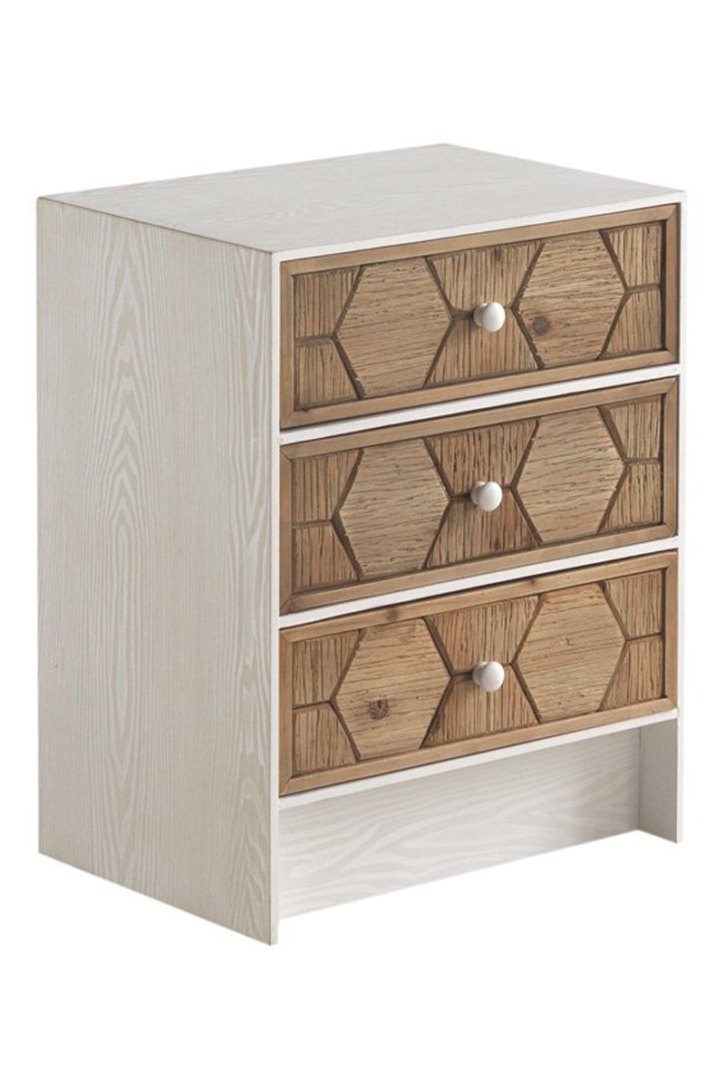 Mesilla de noche. La parte frontal de los cajones es de pino natural.