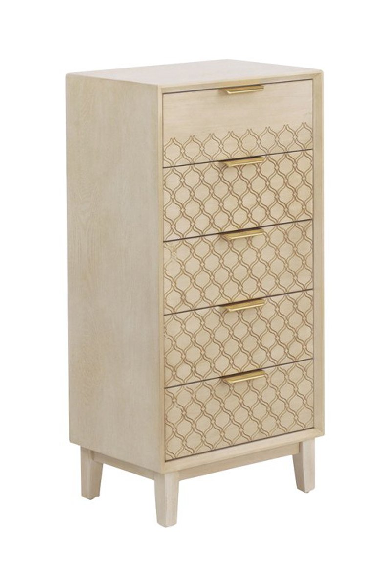 Sifonier con estructura de tableros MDF de roble color vainilla con cajones dorados.