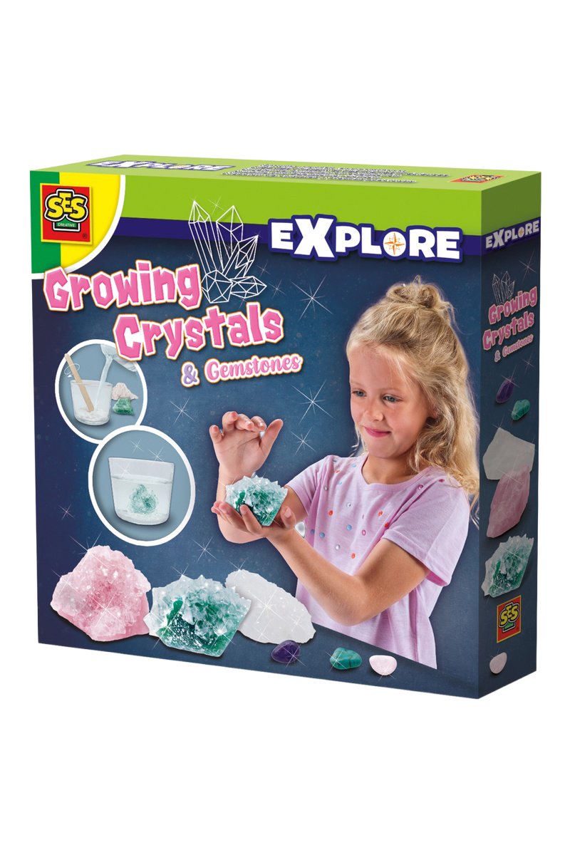 Contiene todo lo necesario para crear tres cristales gigantes y tres piedras preciosas para coleccionar.