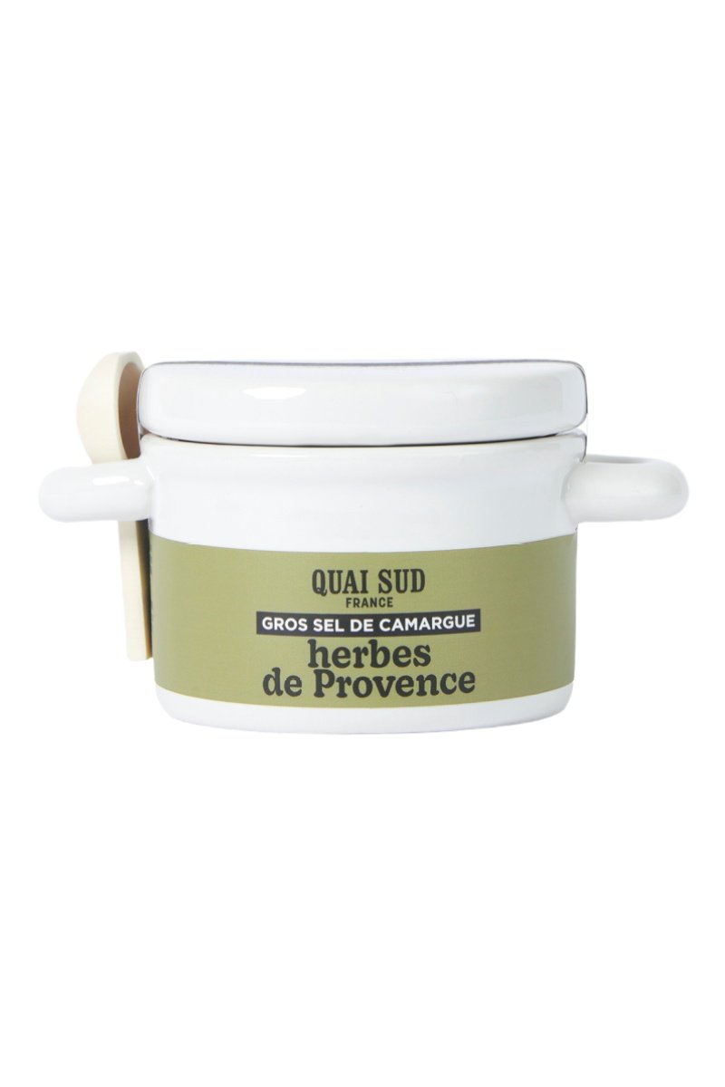 Ingredientes: sal gruesa de Camargue IGP 98 %, hierbas provenzales (ajedrea, romero, orégano, tomillo) 1,9 %. origen Provenza.