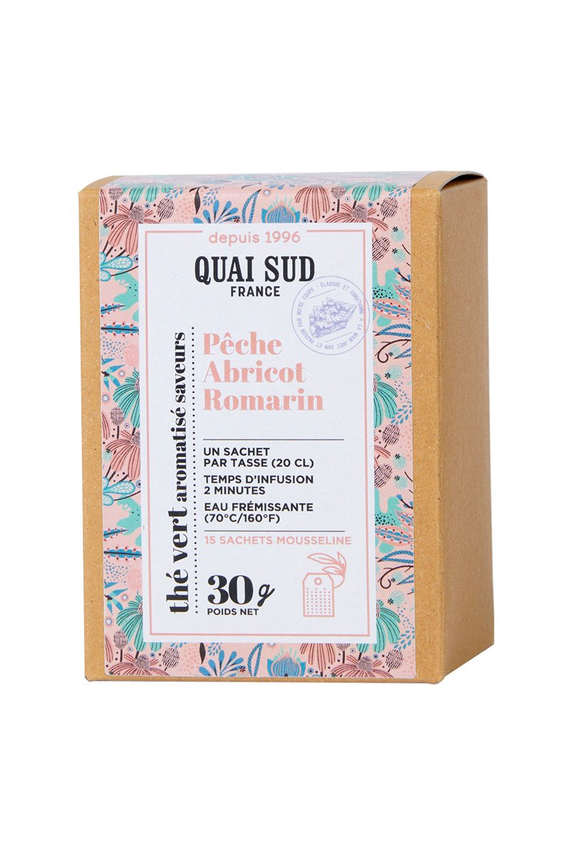 Té verde aromatizado con melocotón, albaricoque y romero.