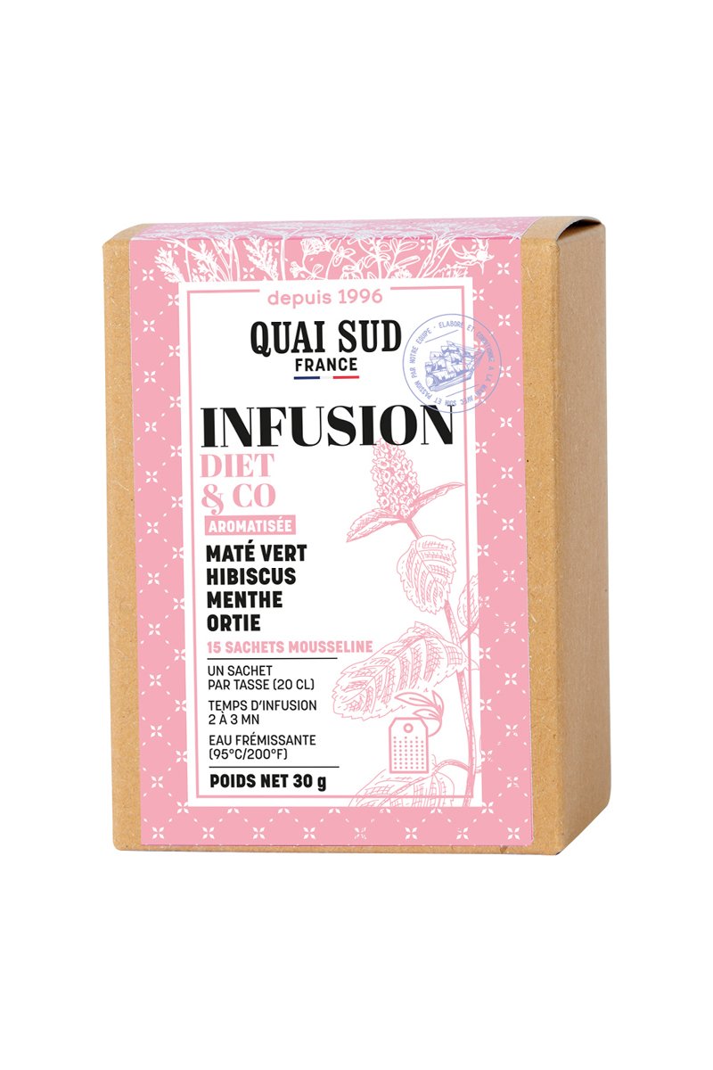 Infusión diet & co aromatizada con mate verde, hibisco, menta y ortiga - 15 bolsas