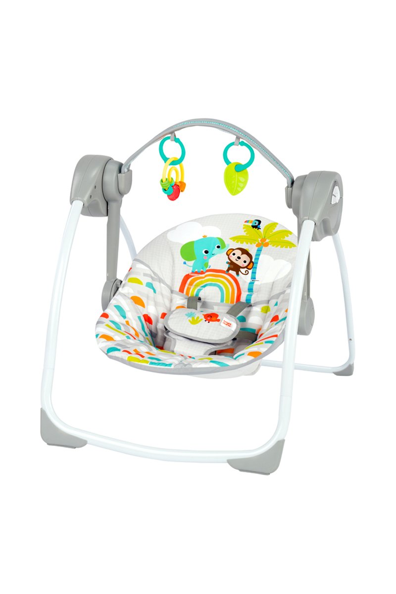 Tu bebé se balanceará cómodamente desde su asiento mullido, como las hojas de las palmeras bajo la brisa, y se divertirá con los juguetes interactivos.