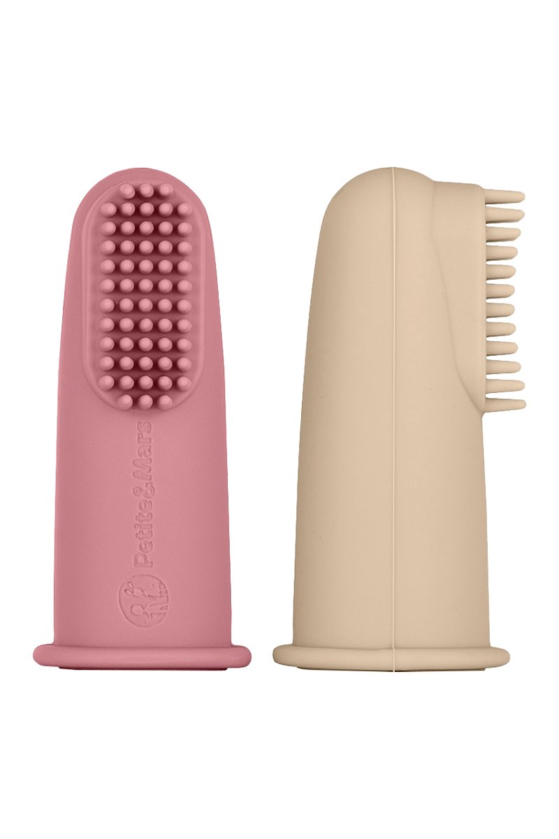 2 cepillos de dientes de dedo de silicona Take&Match - Rosa y arena - Desde recién nacido