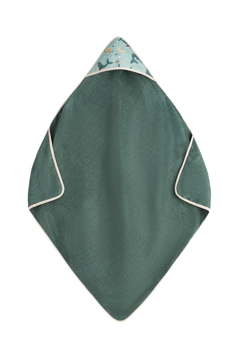 Toalla con capucha de fibra de bambú Loulou - Verde oscuro y azul - 100 x 100 cm