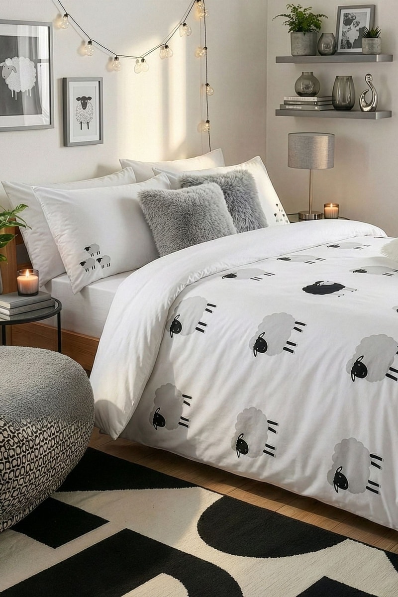 Juego de nórdico de algodón 57 hilos/cm² Mouton noir - Blanco