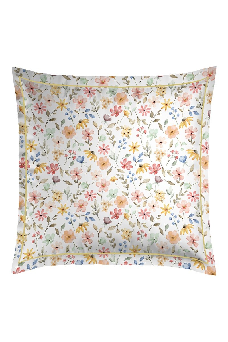 2 fundas de almohada de satén de algodón Fleurs d’été - 80 hilos/cm² - Blanco y amarillo