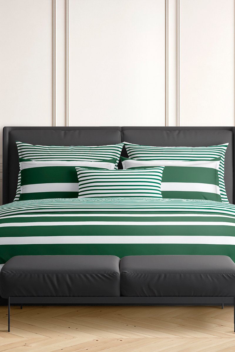 Juego de nórdico de satén de algodón 80 hilos/cm² Marinière - Verde y blanco