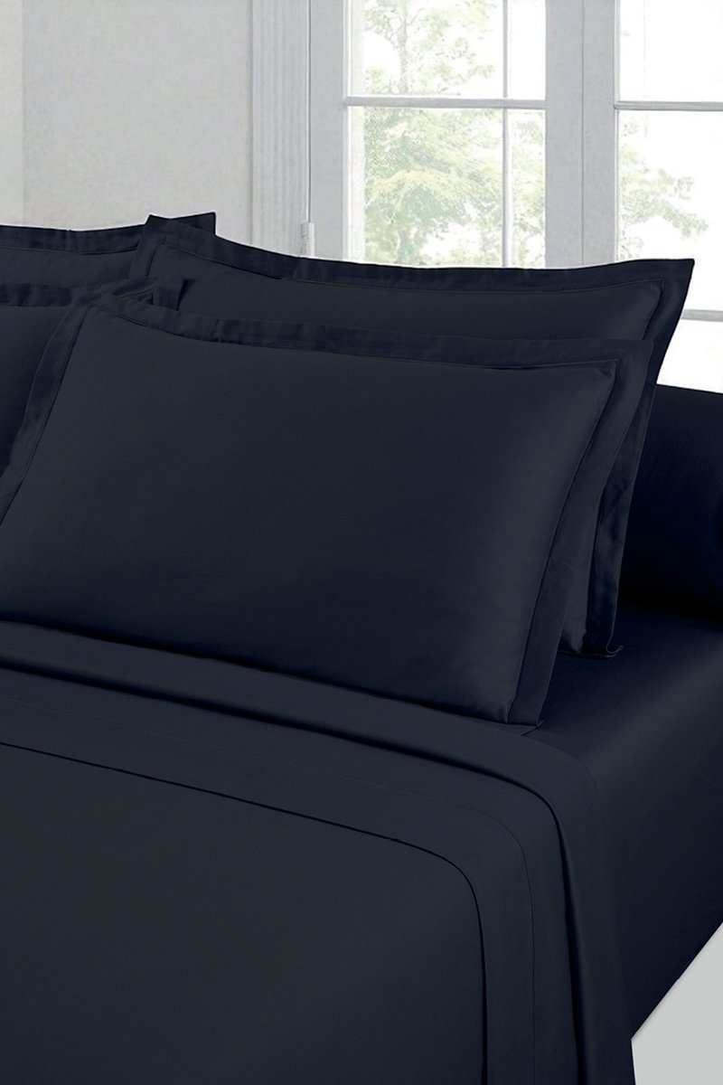 Juego de sábanas de satén de algodón Uni - 80 hilos/cm² - Azul oscuro