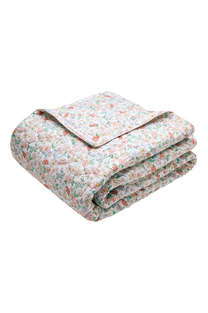 Colcha de satén de algodón Prairie fleurie - 80 hilos/cm² - Blanco