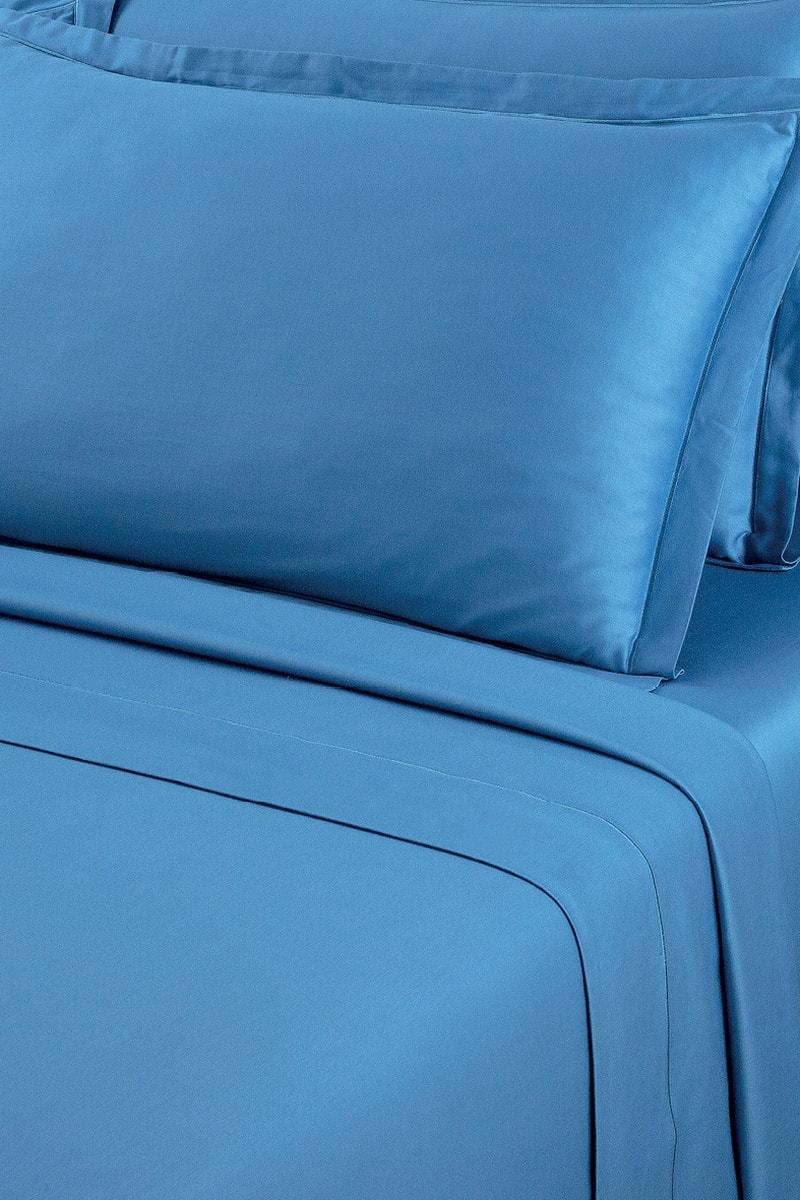 Sábana encimera de satén de algodón 80 hilos/cm² Uni 1 baratta - Azul