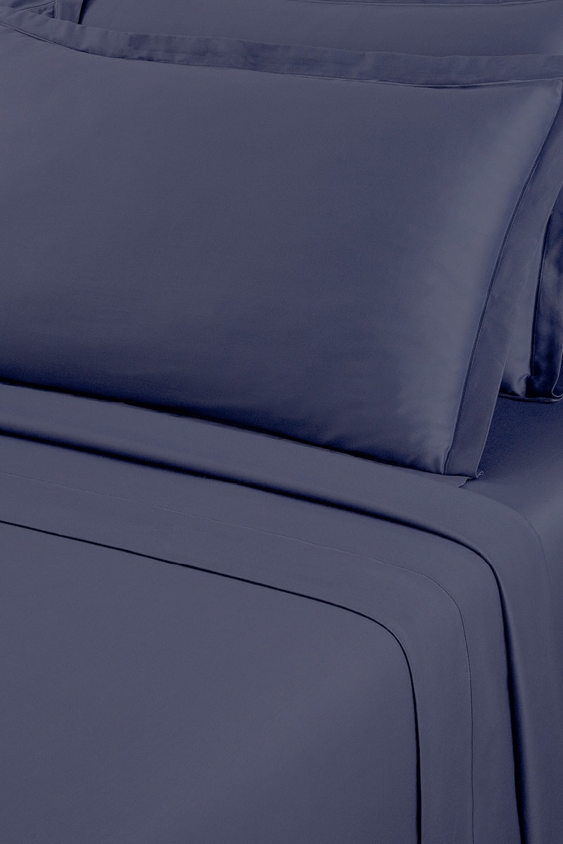 Sábana encimera de satén de algodón 80 hilos/cm² Uni 1 baratta - Azul noche
