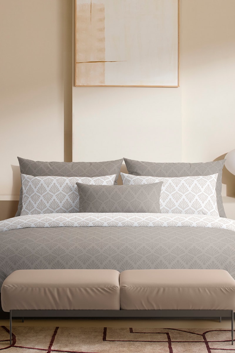 Juego de nórdico de satén de algodón 80 hilos/cm² Harmonie végétale - Topo
