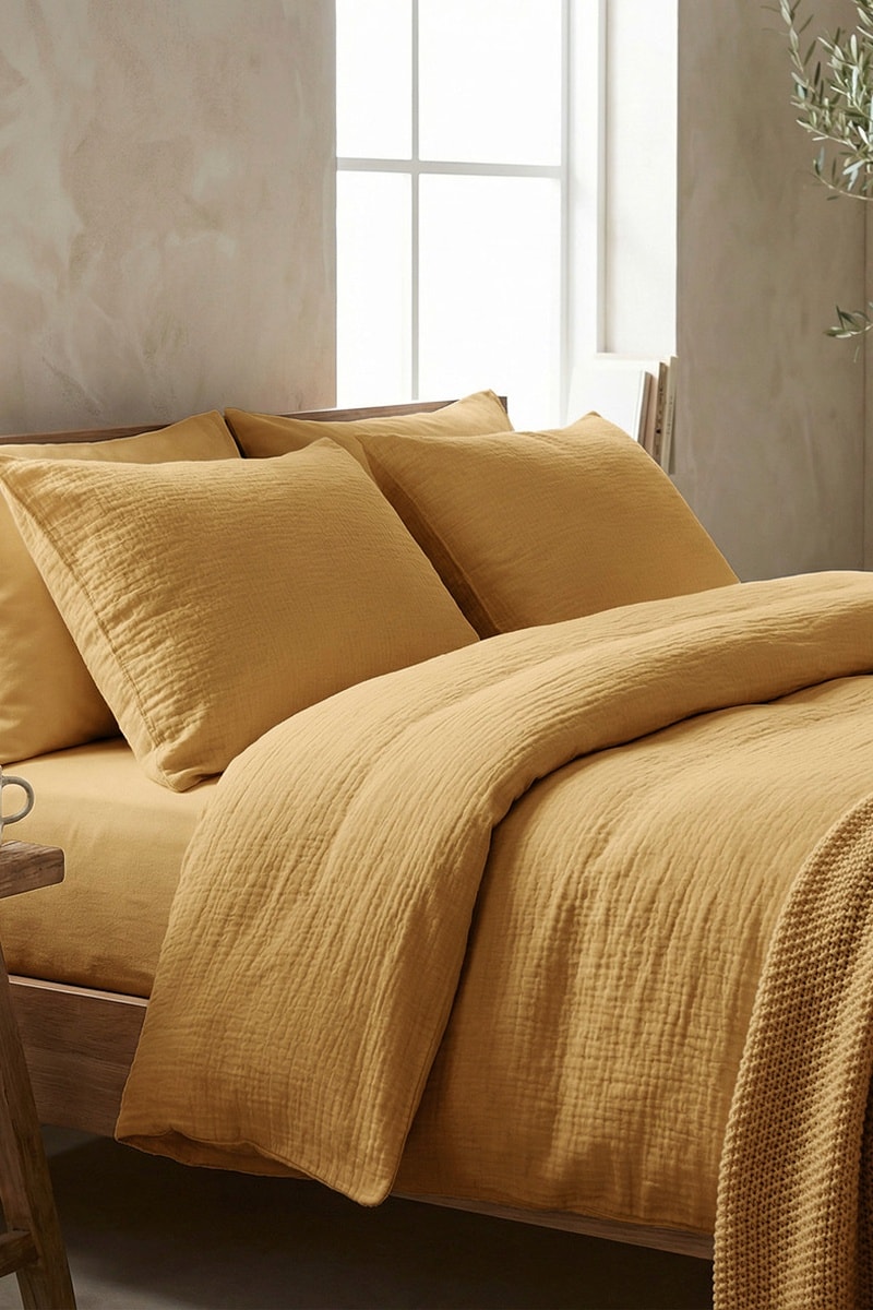 Juego de nórdico de gasa de algodón 85 hilos/cm² Uni - Amarillo