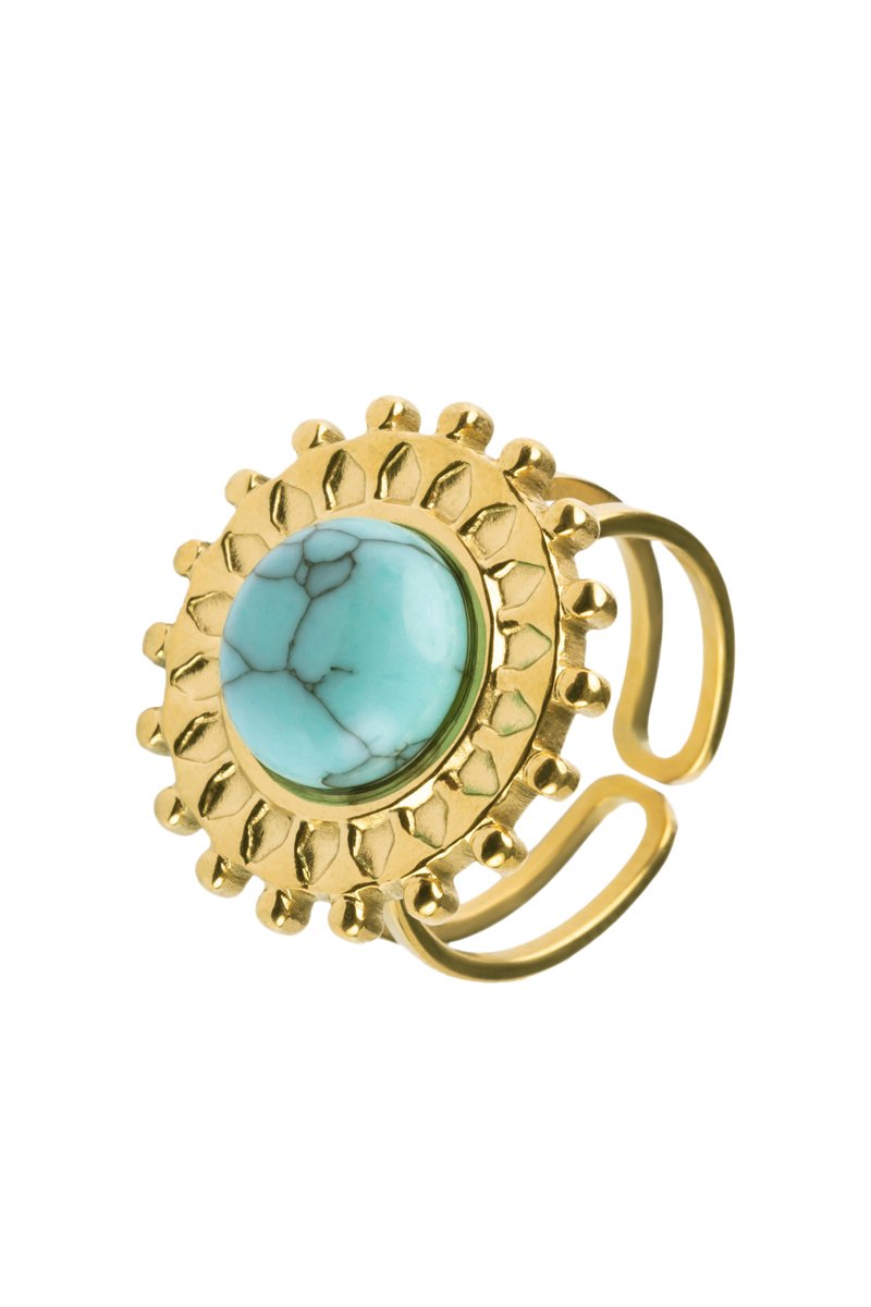 Anillo ajustable chapado en oro amarillo con una turquesa.