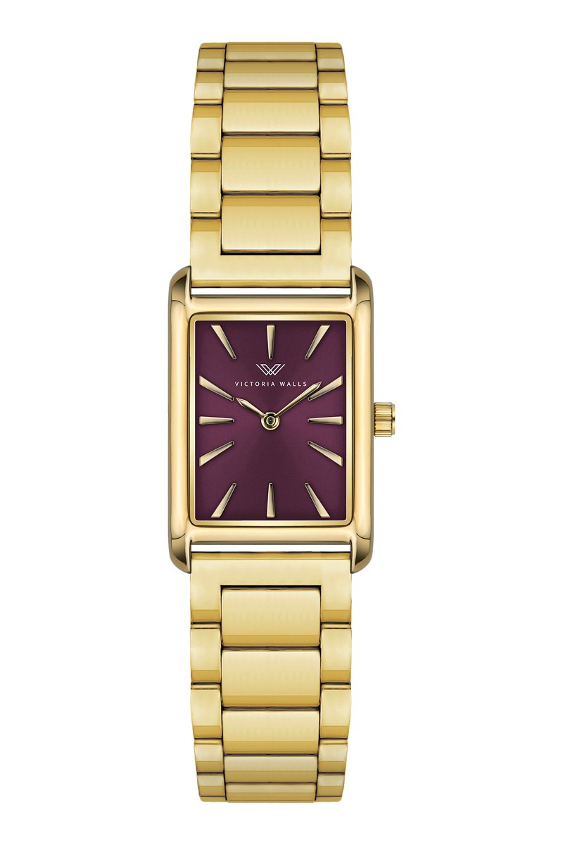 Reloj de cuarzo de acero - Dorado y burdeos - Victoria Walls