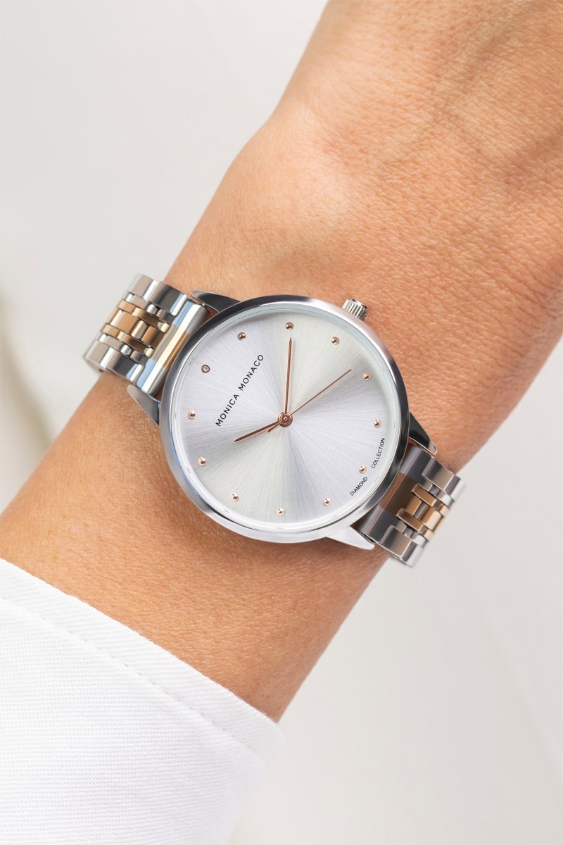 Reloj de cuarzo de acero y diamante - Monica Monaco