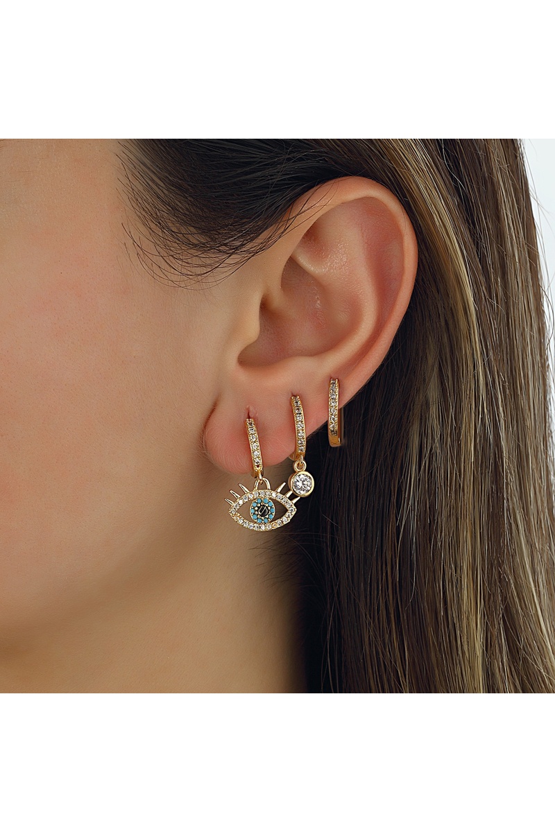 Trío de pendientes - Latón chapado en oro y circones