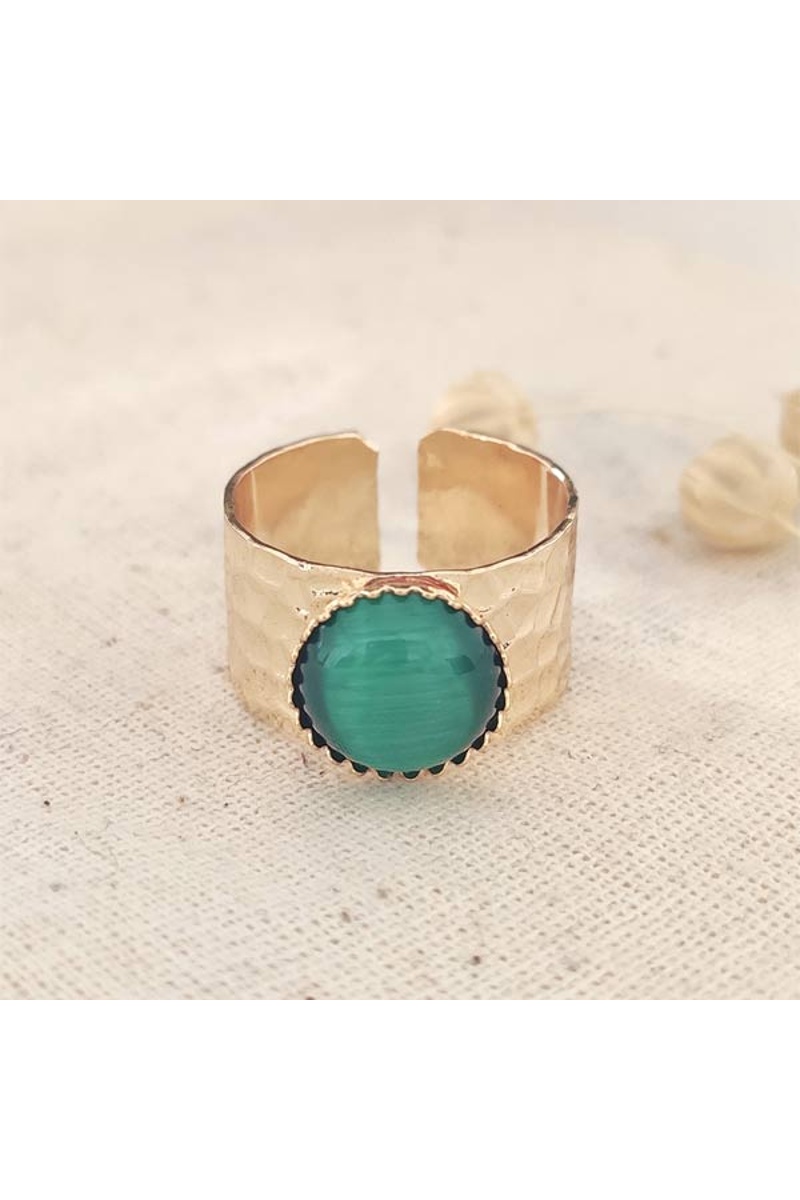 Anillo ajustable - Latón chapado en oro y ojo de gato