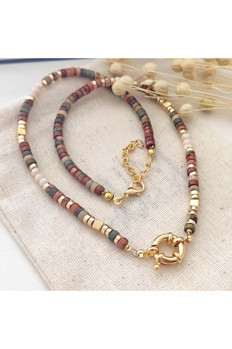 Collar de piedras y perlas - Latón chapado en oro