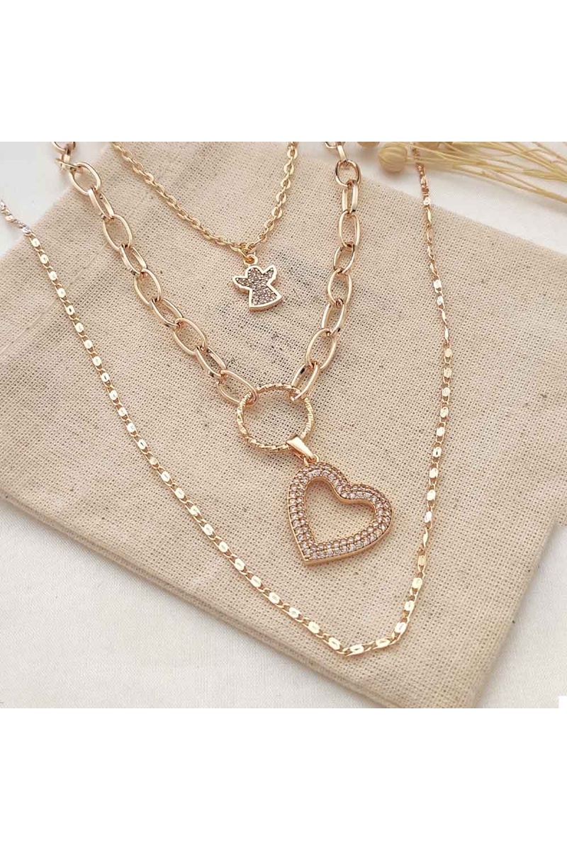 Collar - Latón chapado en oro y circonitas