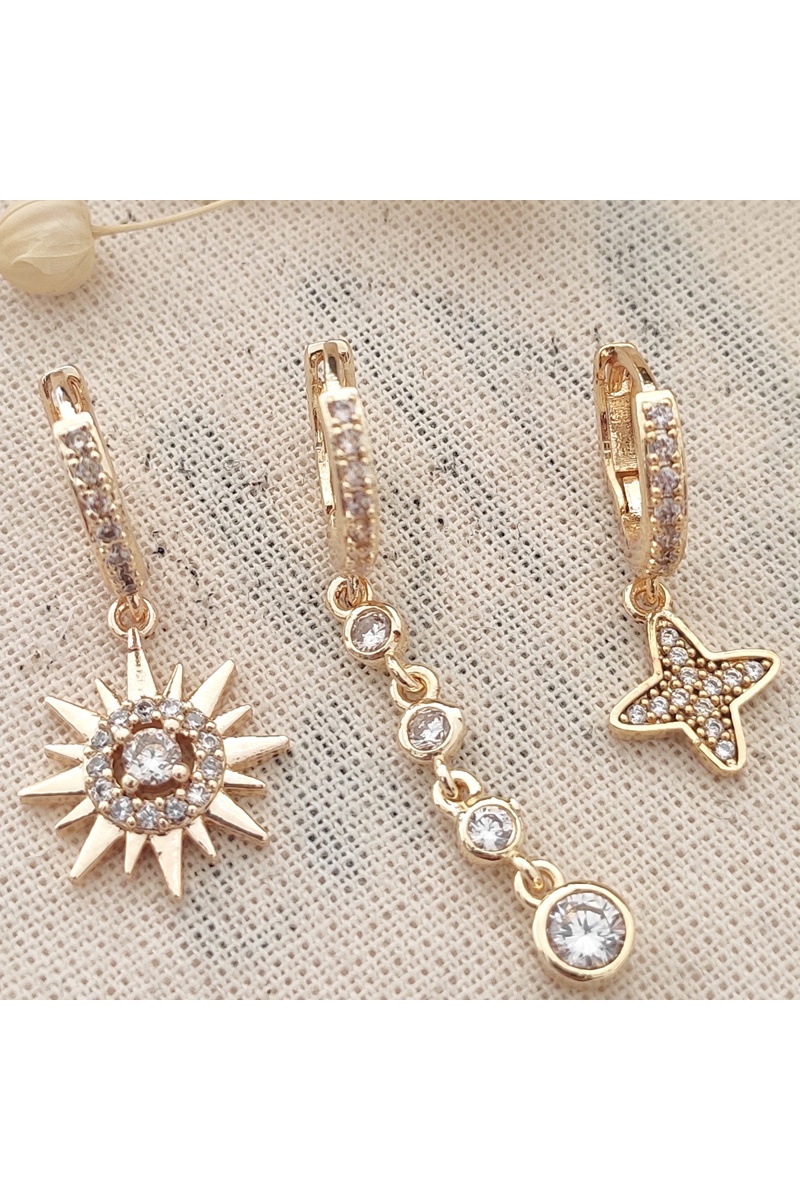 Trío de pendientes - Latón chapado en oro y circones