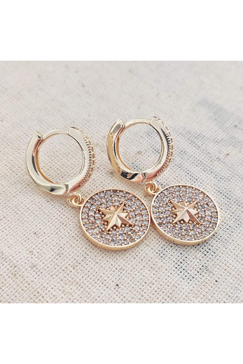 Pendientes - Pole Star - Latón chapado en oro y circones