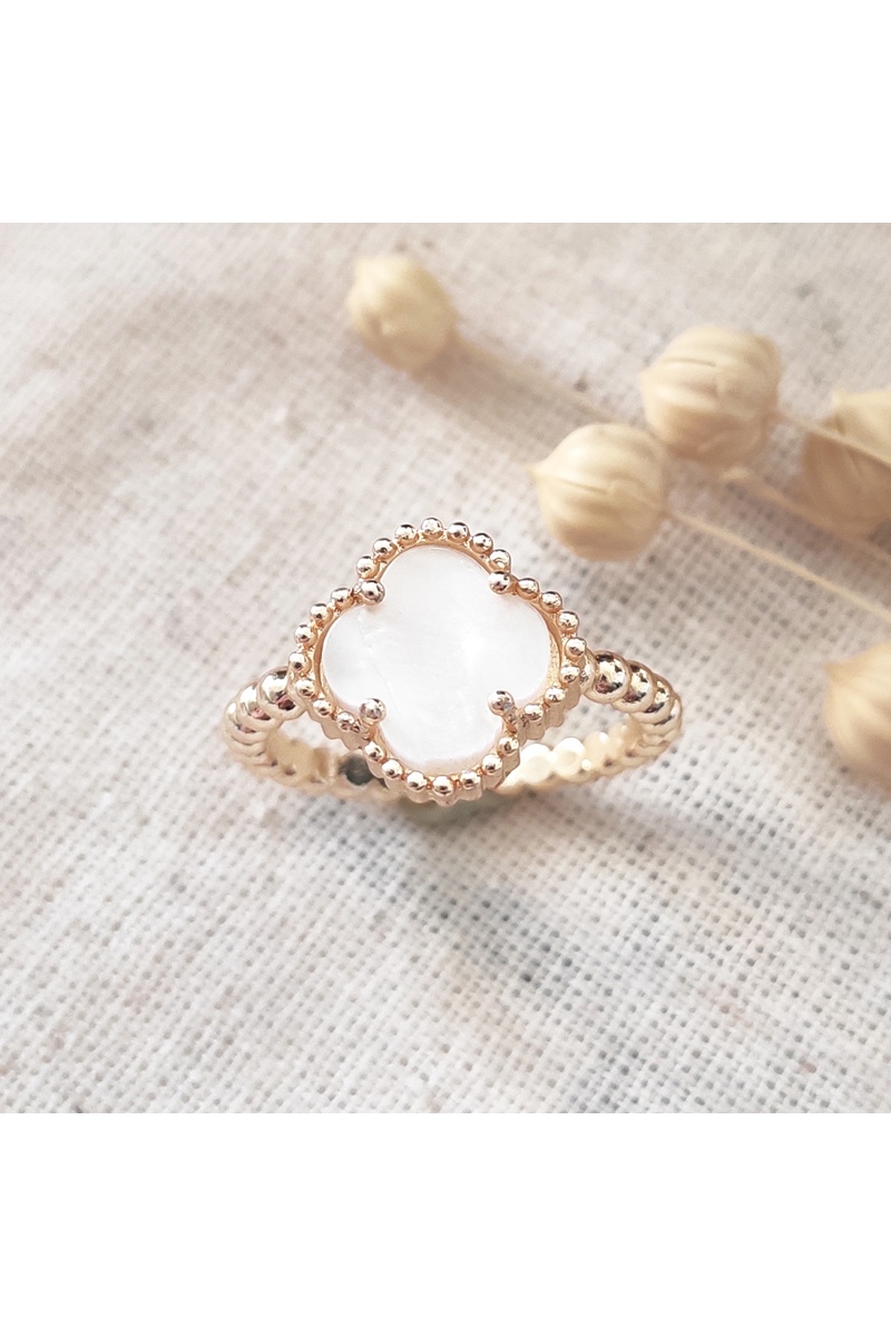 Anillo ajustable de trébol - Latón chapado en oro y nácar blanco