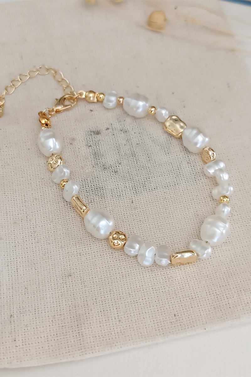 Pulsera chapada en oro amarillo con cuentas de imitación.