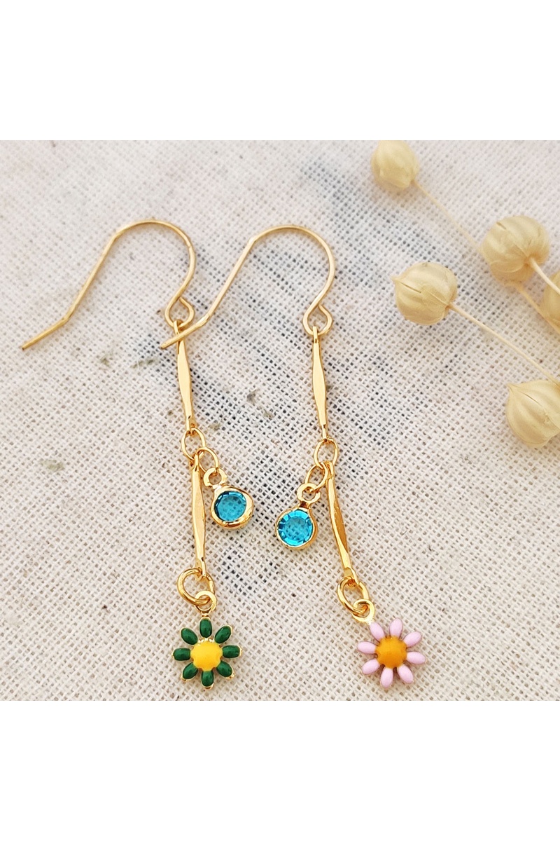 Pendientes de flores - Latón chapado en oro y piedras multicolor