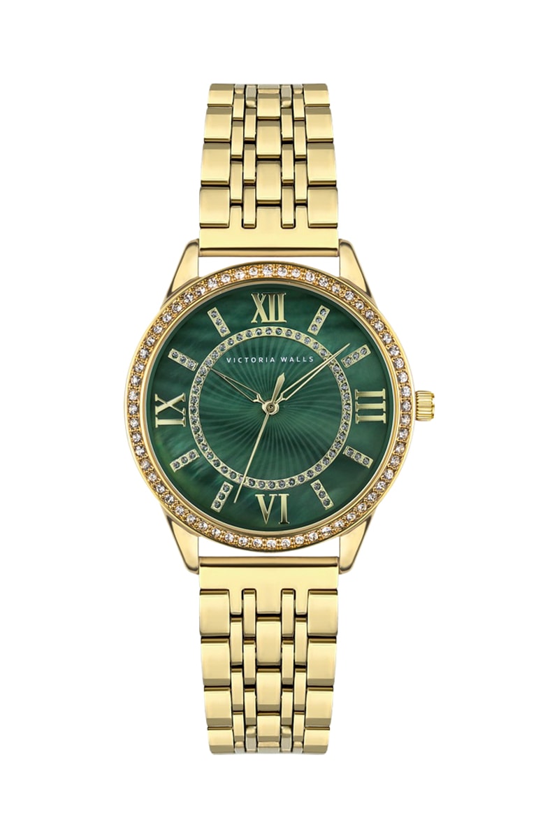 Reloj de cuarzo de acero chapado en ion de oro amarillo