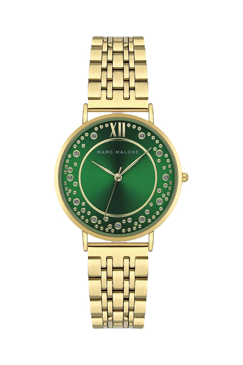 Reloj de cuarzo de acero chapado en ion de oro amarillo