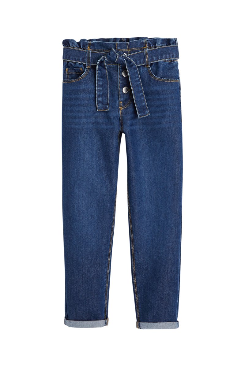 Tiras anudables y trabillas en la cintura.