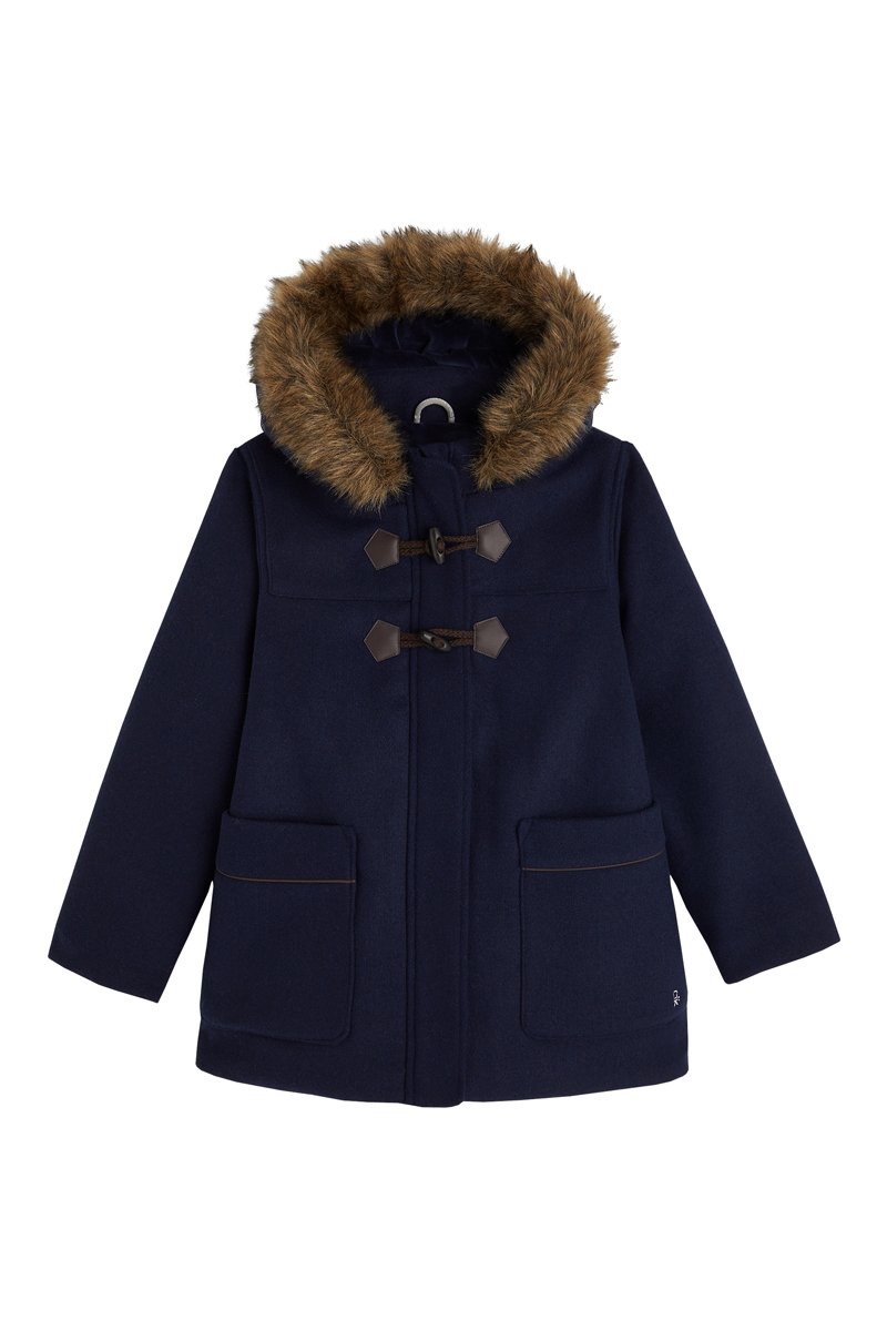Abrigo con capucha y pelo sintético.