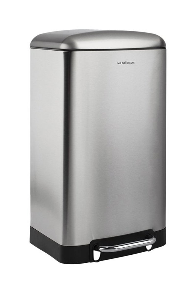 Cubo de basura con pedal de acero inoxidable.