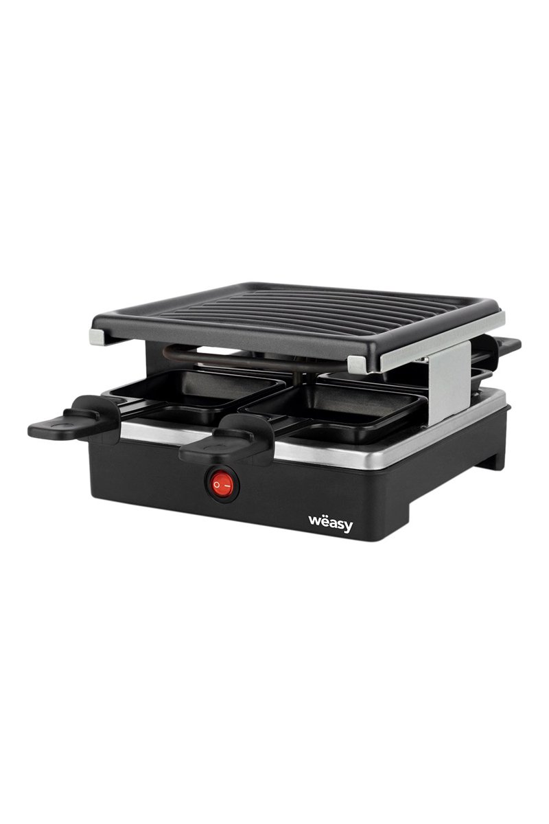 Con una potencia de 600 vatios, esta raclette con rejilla está pensada para 4 personas.