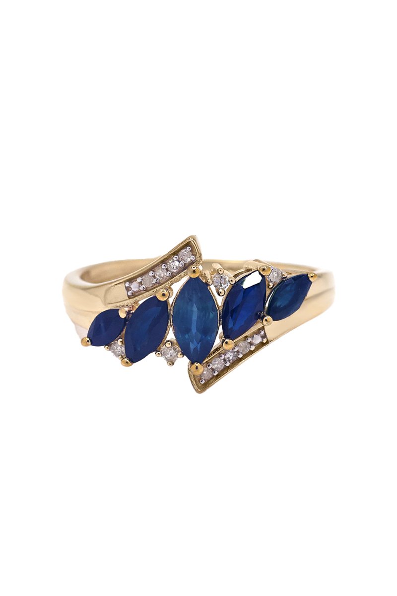 Anillo de oro amarillo con 12 diamantes y 5 zafiros.