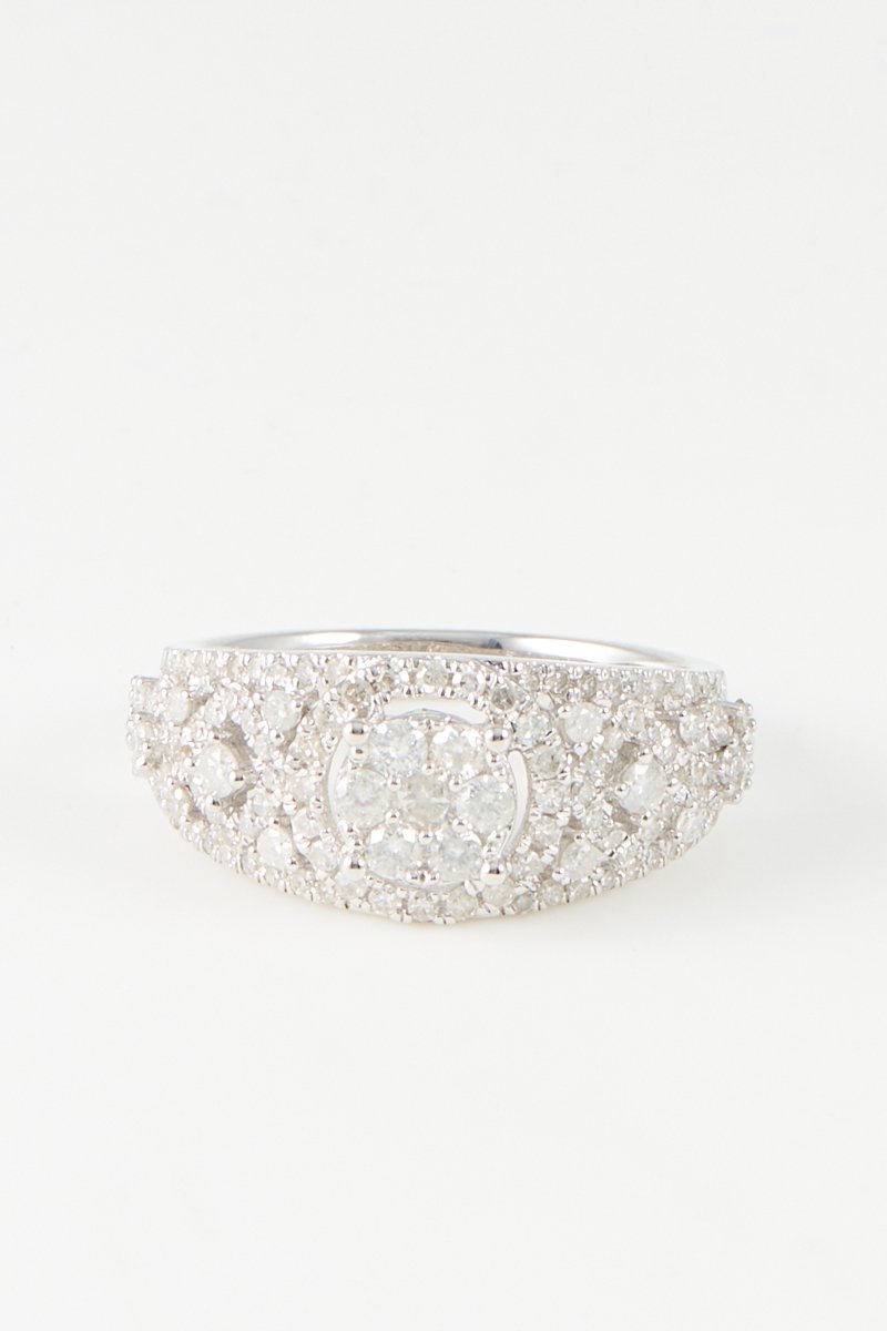 Anillo de oro blanco con 129 diamantes.