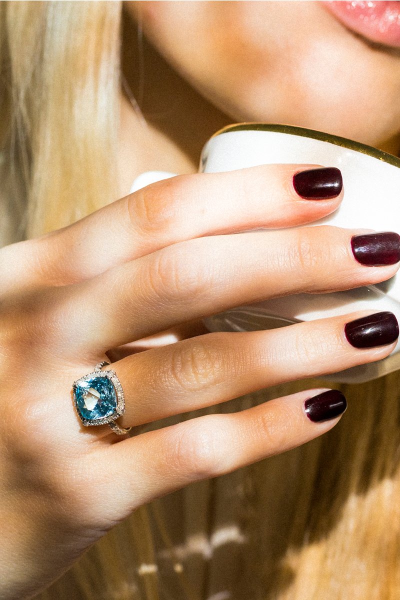 Anillo Albury - Oro blanco, diamantes y topacio