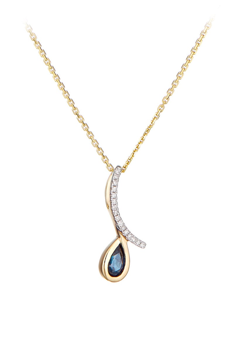 Colgante de oro amarillo con 16 diamantes y un zafiro.