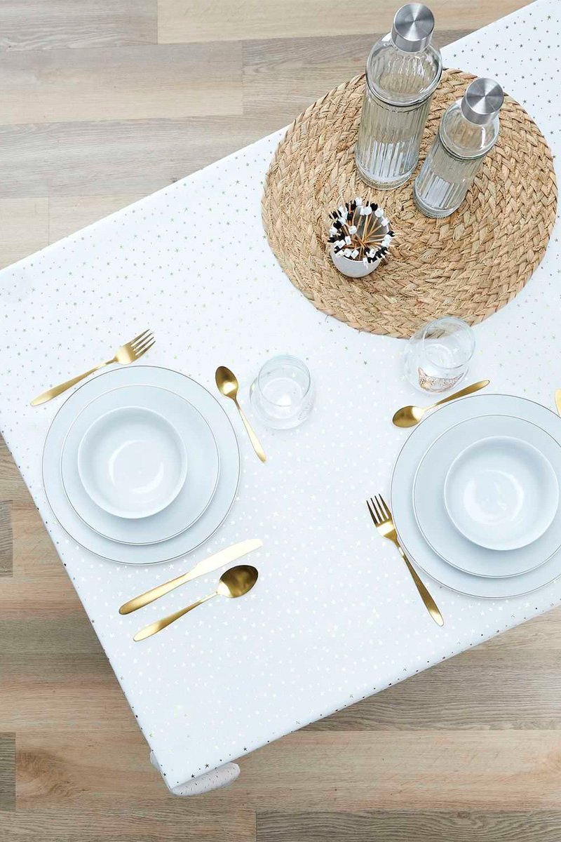 Mantel rectangular - Blanco y dorado - 140 x 250 cm