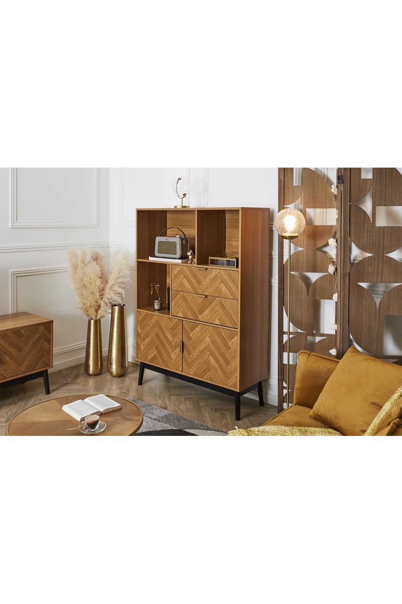 Aparador de 2 puertas de madera y pino Felix - 100 x 140 x 35 cm