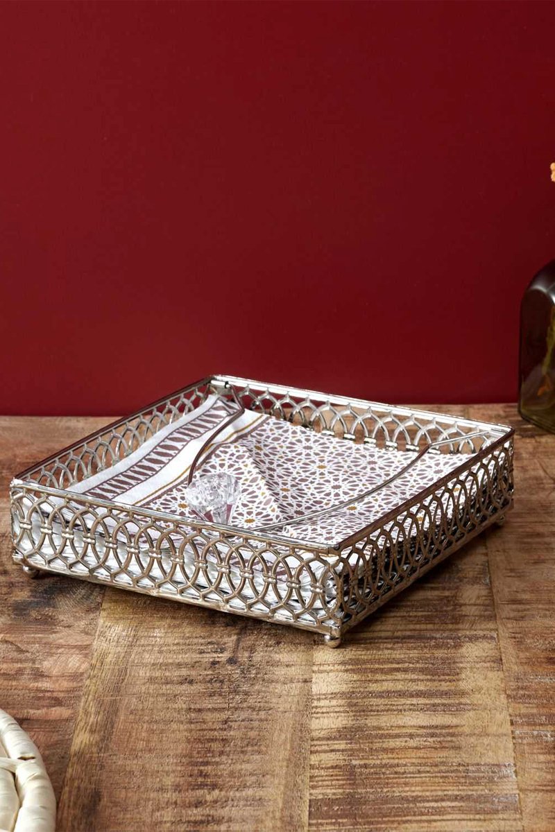 Servilletero - Plateado - 16,8 x 4,8 x 16,8 cm