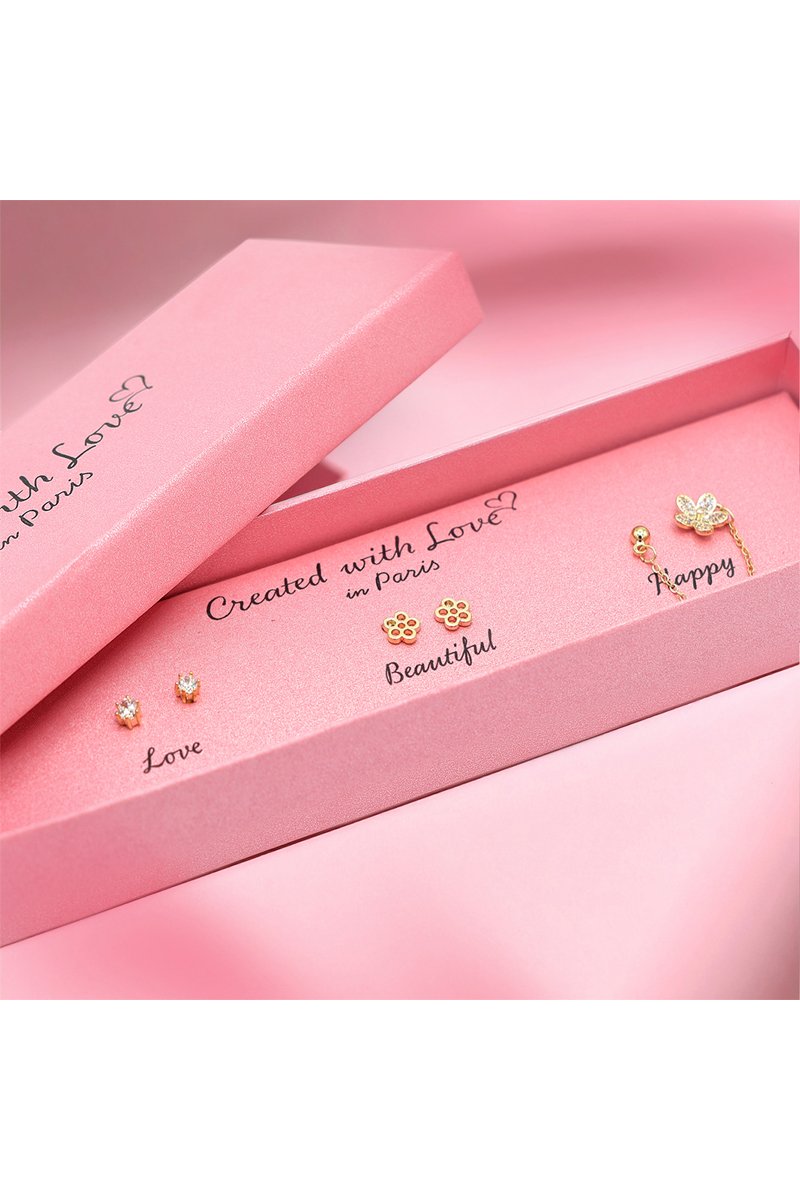 2 pares de dormilonas y 1 pendiente doble Spark - Dorado