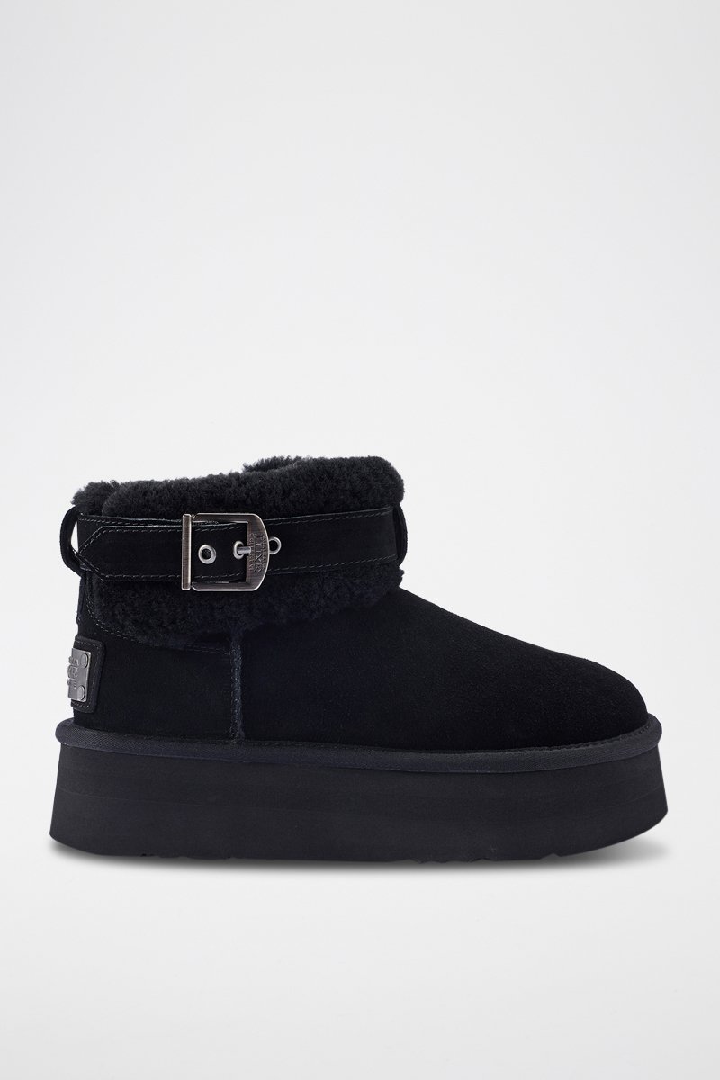 Botines de piel ovina nobuk forrados con plataforma - Negro