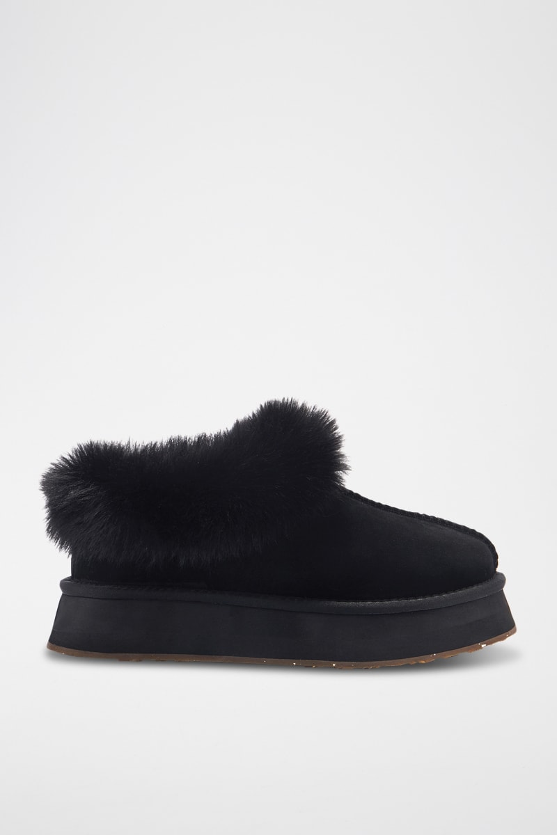 Zuecos de piel ovina con plataforma - Negro