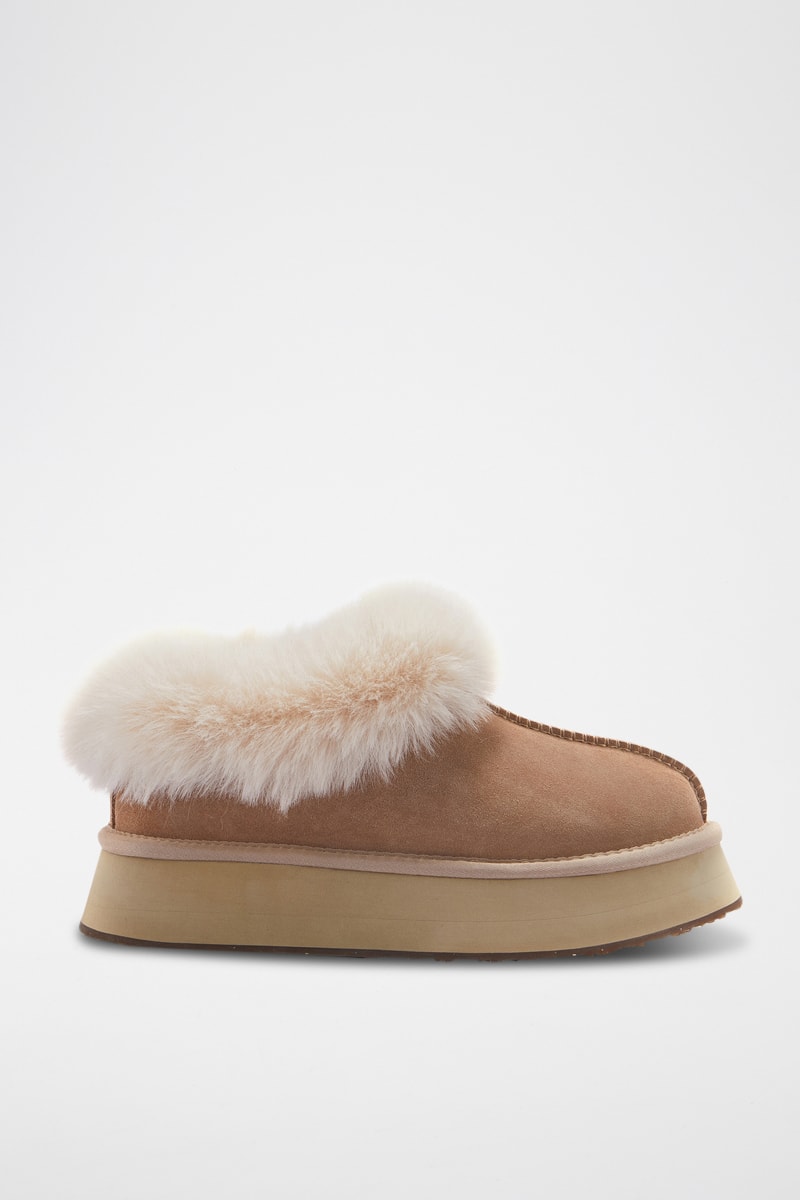 Zuecos de piel ovina con plataforma - Beige